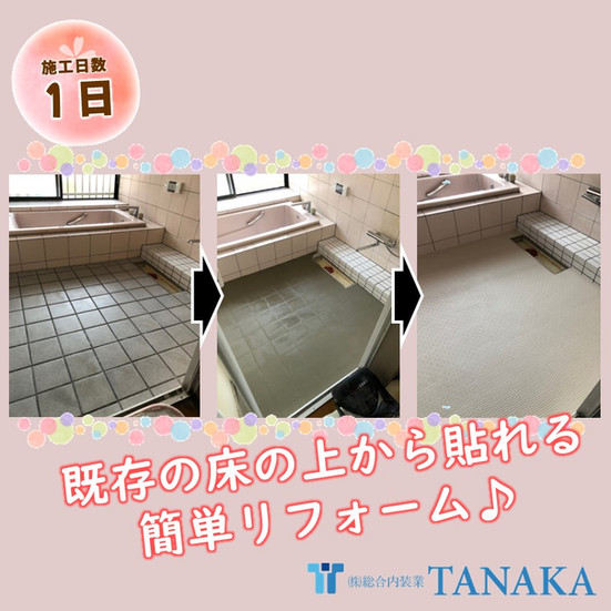 既存の床にリフォーム用浴室シートを貼るだけ